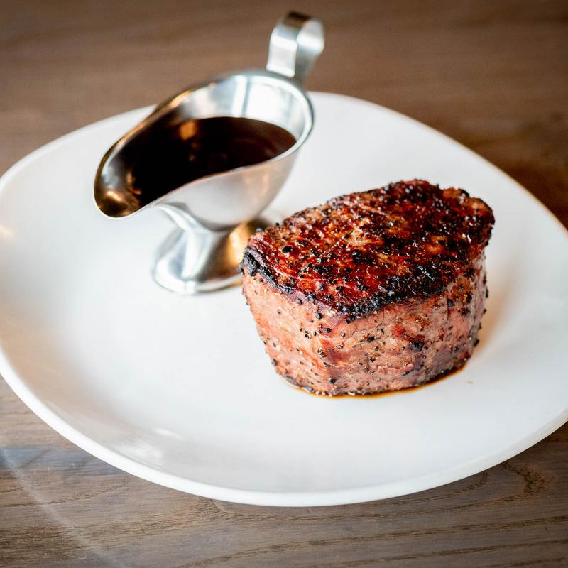 From beginning to end, our steaks are different. We start with selecting only premium cuts from our small, family-run butcher, sourcing top notch products from a father/son duo who knows our specifications ensuring only the best reaches your plate. We end with our unique execution, grilling all of our steaks over an open fire pit of hardwood oak at more than 1200 degrees. No gas. This preparation infuses each cut with a natural smokiness throughout and lends to the exterior of the steak a subtle charring which perfectly enhances the flavor and texture while at the same time sealing in the natural juices.